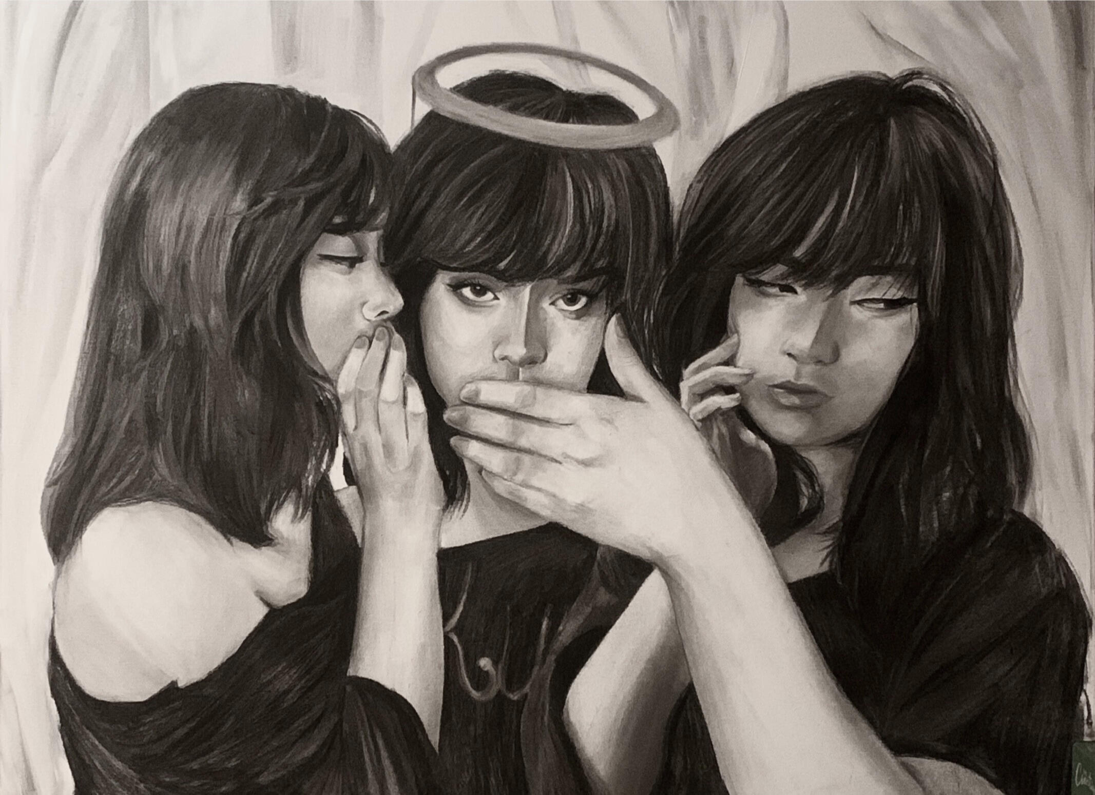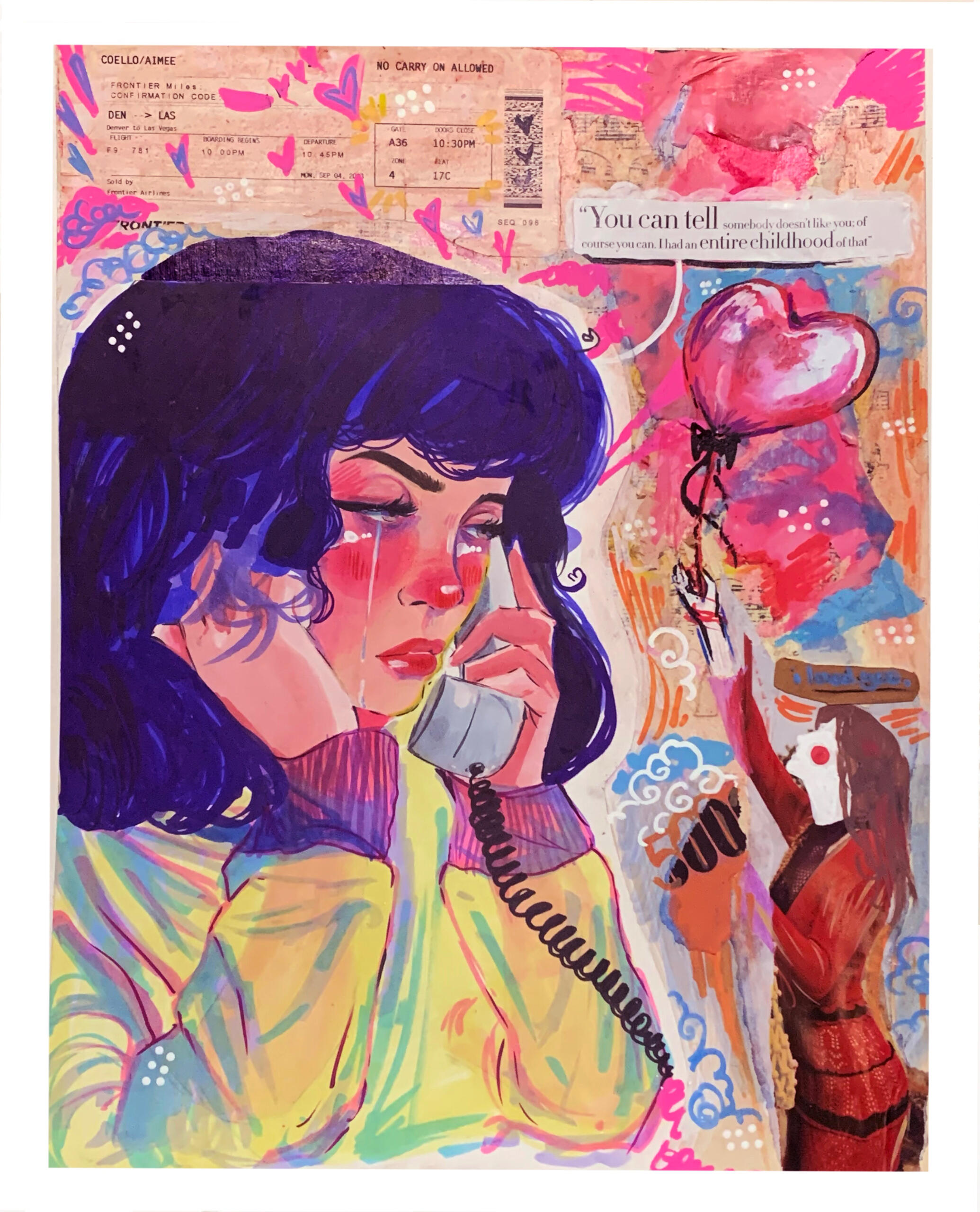 Aimee Coello uses mixed media and illustration techniques to create surreal worlds. Her art